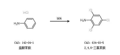 1.通過鹽酸苯胺合成2,4,6-三氯苯胺,收率約90%;