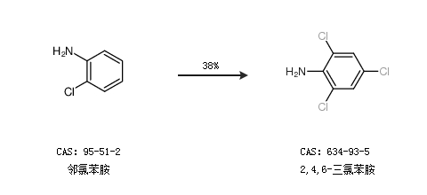2.通過鄰氯苯胺合成2,4,6-三氯苯胺,收率約38%;