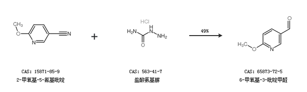 2.通過(guò)2-甲氧基-5-氰基吡啶和鹽酸氨基脲合成6-甲氧基-3-吡啶甲醛,收率約49%;