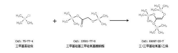 2.通過三甲基氯硅烷和三甲基硅基三甲硅氧基醋酸酯合成三(三甲基硅氧基)乙烯