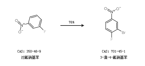 2.通過鐵和對(duì)氟硝基苯合成3-溴-4-氟硝基苯,收率約57%;