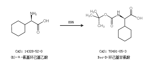 1.通過(R)-α-氨基環(huán)己基乙酸合成Boc-D-環(huán)己基甘氨酸,收率約89%;