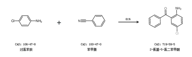 2.通過對(duì)氯苯胺和苯甲腈合成2-氨基-5-氯二苯甲酮,收率約81%;