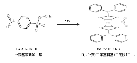 2.通過4-硝基苯磺酸甲酯合成[1,1''-雙(二苯基膦基)二茂鐵]二氯化鈀,收率約14%;