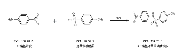 1.通過4-硝基苯胺和對甲苯磺酰氯合成4''-硝基對甲苯磺酰苯胺,收率約97%;