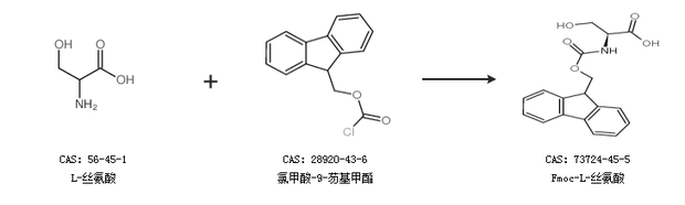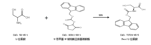2.通過(guò)L-絲氨酸和9-芴甲基-N-琥珀酰亞胺基碳酸酯合成Fmoc-L-絲氨酸,收率約99%;