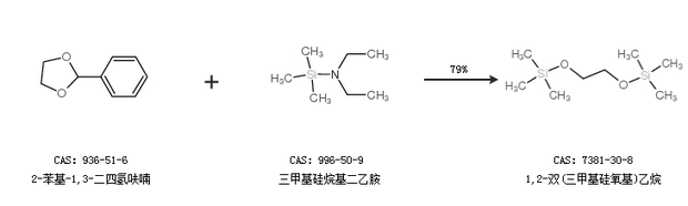 2.通過2-苯基-1,3-二四氫呋喃和三甲基硅烷基二乙胺合成1,2-雙(三甲基硅氧基)乙烷,收率約79%;