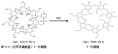 2.通過單-6-O-(對甲苯磺?;?-β-環(huán)糊精合成β-環(huán)糊精,收率約30%;