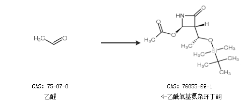 1.通過乙醛合成4-乙酰氧基氮雜環(huán)丁酮