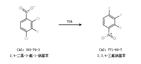 1.通過2,4-二氯-3-氟-1-硝基苯合成2,3,4-三氟硝基苯,收率約70%;