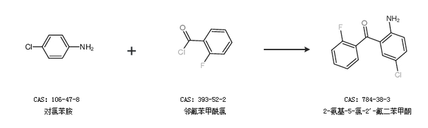 1.通過對氯苯胺和鄰氟苯甲酰氯合成2-氨基-5-氯-2''-氟二苯甲酮