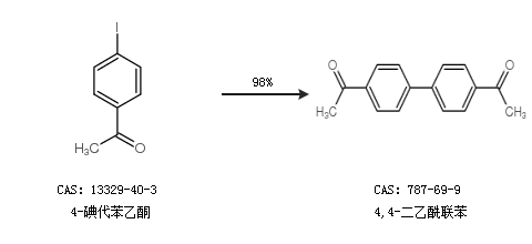 1.通過4-碘代苯乙酮合成4,4-二乙酰聯(lián)苯,收率約98%;