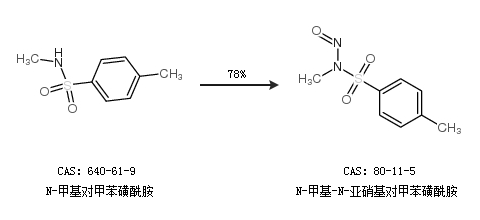 中文別名 N-甲基-N-亞硝基-P-甲苯磺酰胺;對甲苯磺酰甲基亞硝胺;N-甲基-N-亞硝基對甲苯磺酰;N-甲基-N-亞硝基-4-甲苯磺酰胺;