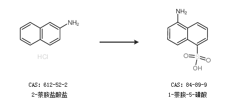 1.通過(guò)2-萘胺鹽酸鹽合成1-萘胺-5-磺酸
