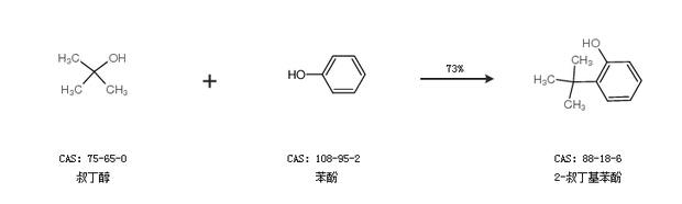 1.通過叔丁醇和苯酚合成2-叔丁基苯酚,收率約73%;