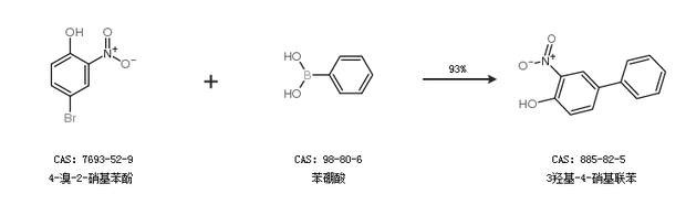2.通過4-溴-2-硝基苯酚和苯硼酸合成3羥基-4-硝基聯(lián)苯,收率約93%;