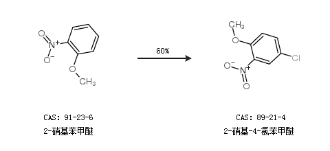 1.通過2-硝基苯甲醚合成2-硝基-4-氯苯甲醚,收率約60%;