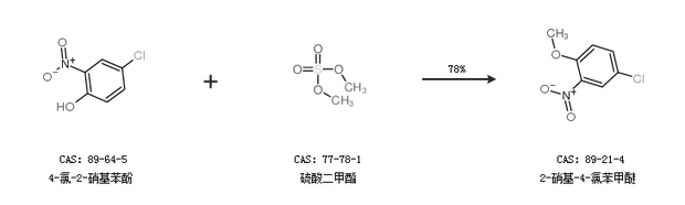 2.通過4-氯-2-硝基苯酚和硫酸二甲酯合成2-硝基-4-氯苯甲醚,收率約78%;