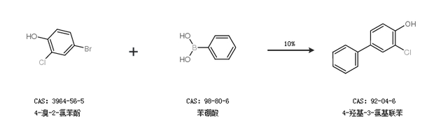 2.通過(guò)4-溴-2-氯苯酚和苯硼酸合成4-羥基-3-氯基聯(lián)苯,收率約10%;