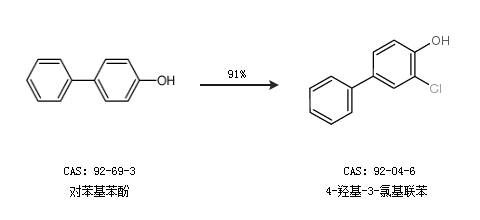 1.通過(guò)對(duì)苯基苯酚合成4-羥基-3-氯基聯(lián)苯,收率約91%;