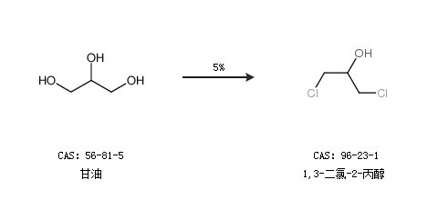 2.通過甘油合成1,3-二氯-2-丙醇,收率約5%;