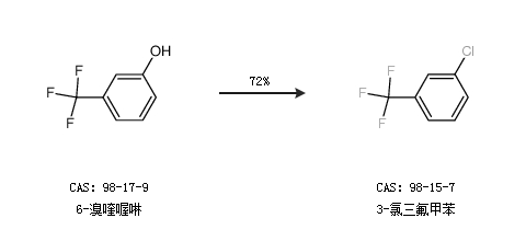 2.通過6-溴喹喔啉合成3-氯三氟甲苯,收率約72%;