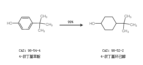 1.通過4-叔丁基苯酚合成4-叔丁基環(huán)己醇,收率約99%;