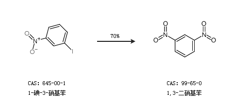 1.通過(guò)1-碘-3-硝基苯合成1,3-二硝基苯,收率約70%;