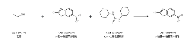 2.通過乙醇、2-氯-6-硝基苯并噻唑和N,N''-二環(huán)己基硫脲合成2-巰基-6-硝基苯并噻唑