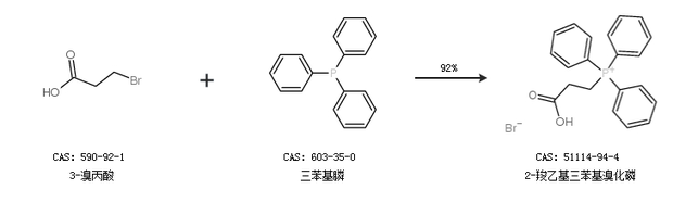 1.通過3-溴丙酸和三苯基膦合成2-羧乙基三苯基溴化磷,收率約92%;