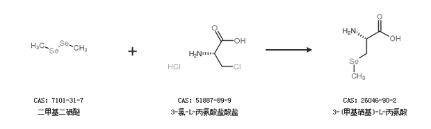1.通過二甲基二硒醚和3-氯-L-丙氨酸鹽酸鹽合成3-(甲基硒基)-L-丙氨酸