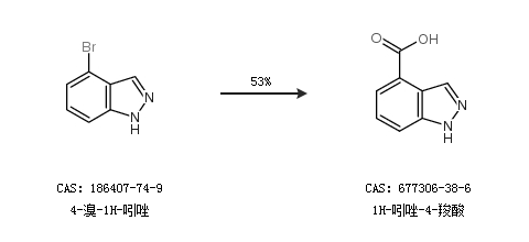 1.通過(guò)4-溴-1H-吲唑合成1H-吲唑-4-羧酸,收率約53%;