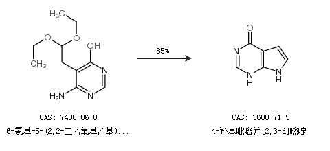 2.通過6-氨基-5-(2,2-二乙氧基乙基)嘧啶-4-醇合成4-羥基吡咯并[2,3-d]嘧啶,收率約85%;
