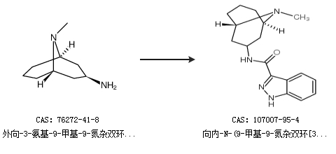 中文名稱 向內(nèi)-N-(9-甲基-9-氮雜雙環(huán)[3.3.1]壬烷-3基)-1H-吲唑-3-甲酰胺