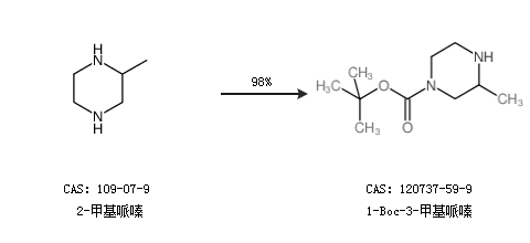 1.通過2-甲基哌嗪合成1-Boc-3-甲基哌嗪,收率約98%;