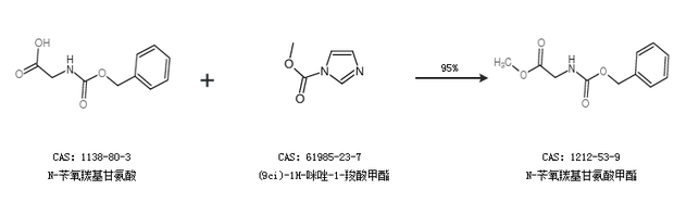 2.通過N-芐氧羰基甘氨酸和(9ci)-1H-咪唑-1-羧酸甲酯合成N-芐氧羰基甘氨酸甲酯,收率約95%;