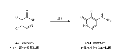 2.通過(guò)4,5-二氯-3-羥基噠嗪合成4-氯-5-肼-3(2H)-噠嗪,收率約29%;