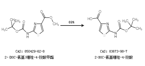 2.通過2-(BOC-氨基)噻唑-4-羧酸甲酯合成2-BOC-氨基噻唑-4-羧酸,收率約69%;