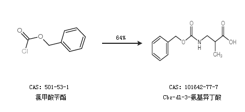 2.通過(guò)氯甲酸芐酯合成Cbz-dl-3-氨基異丁酸,收率約64%;