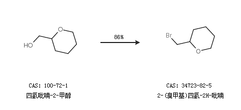 1.通過四氫吡喃-2-甲醇合成2-(溴甲基)四氫-2H-吡喃,收率約86%;