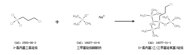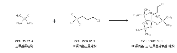 1.通過三甲基氯硅烷和3-氯丙基三氯硅烷合成(3-氯丙基)三(三甲基硅氧基)硅烷
