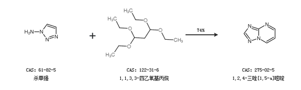 1.通過殺草強(qiáng)和1,1,3,3-四乙氧基丙烷合成1,2,4-三唑[1,5-a]嘧啶,收率約74%;