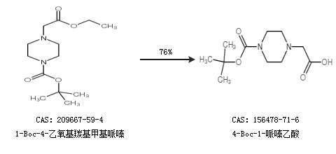 1.通過1-Boc-4-乙氧基羰基甲基哌嗪合成4-Boc-1-哌嗪乙酸,收率約76%;