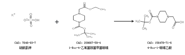 2.通過硫酸氫鉀和1-Boc-4-乙氧基羰基甲基哌嗪合成4-Boc-1-哌嗪乙酸