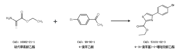 1.通過(guò)硫代草氨酸乙酯和4-溴苯乙酮合成4-(4-溴苯基)-2-噻唑羧酸乙酯
