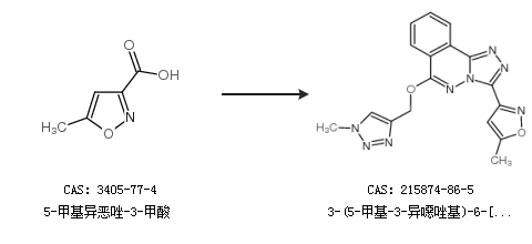 1.通過5-甲基異惡唑-3-甲酸合成3-(5-甲基-3-異噁唑基)-6-[(1-甲基-1H-1,2,3-三氮唑-4-基)甲氧基][1,2,4]三氮唑并[3,4-a]酞嗪