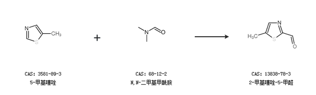 1.通過5-甲基噻唑和N,N-二甲基甲酰胺合成2-甲基噻唑-5-甲醛