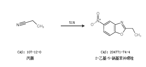 2.通過(guò)丙腈合成2-乙基-5-硝基苯并噁唑,收率約51%;