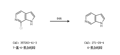 1.通過7-氯-6-氮雜吲哚合成6-氮雜吲哚,收率約84%;