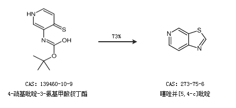 1.通過4-疏基吡啶-3-氨基甲酸叔丁酯合成噻唑并[5,4-c]吡啶,收率約73%;